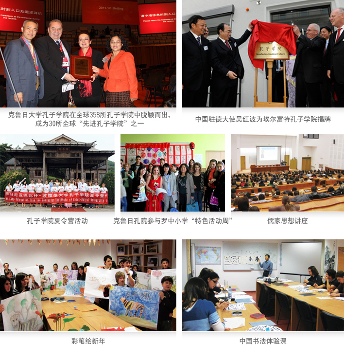 学校分别于罗马尼亚、德国共建了罗马尼亚克卢日巴比什-博雅依大学孔子学院和德国埃尔福特孔子学院,其中克卢日孔子学院下设5个孔子课堂。bat365孔子学院的发展与建设显示了学校在推广汉语和中国文化方面的积极努力,同时对加强中罗以及中德在文化领域的交流与合作也有着积极的意义。