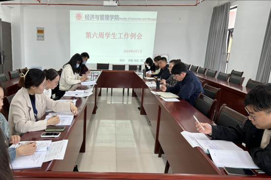 2024年4月1日中午,九游体育官方网站在行政楼725办公室召开本学期第六周学生管理工作例会,副院长秦品德、书记助理叶赵强、院长助理张珊以及全体辅导员参加会议,会议由吴玲院长主持。