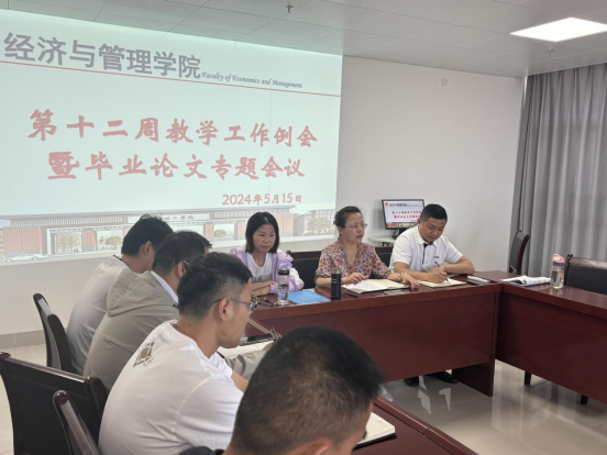 2024年5月15日下午,九游体育官方网站在行政楼725会议室召开九游体育官方网站第十二周工作例会,院长吴玲主持会议,副院长秦品德、院长助理张珊以及全体教师参会。