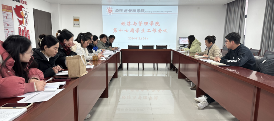 2024年12月24日,九游体育官方网站在行政楼725会议室召开了本学期第十七周学生管理工作例会。学院书记助理叶赵强、团总支书记员禹辛及全体辅导员参会,会议由院长吴玲主持。