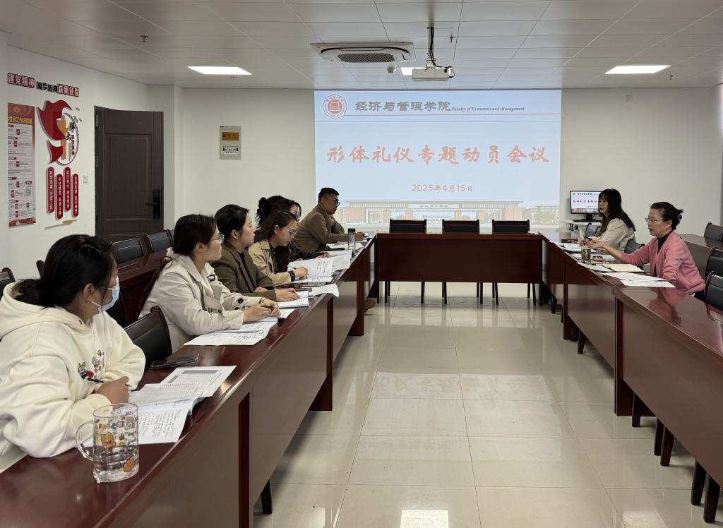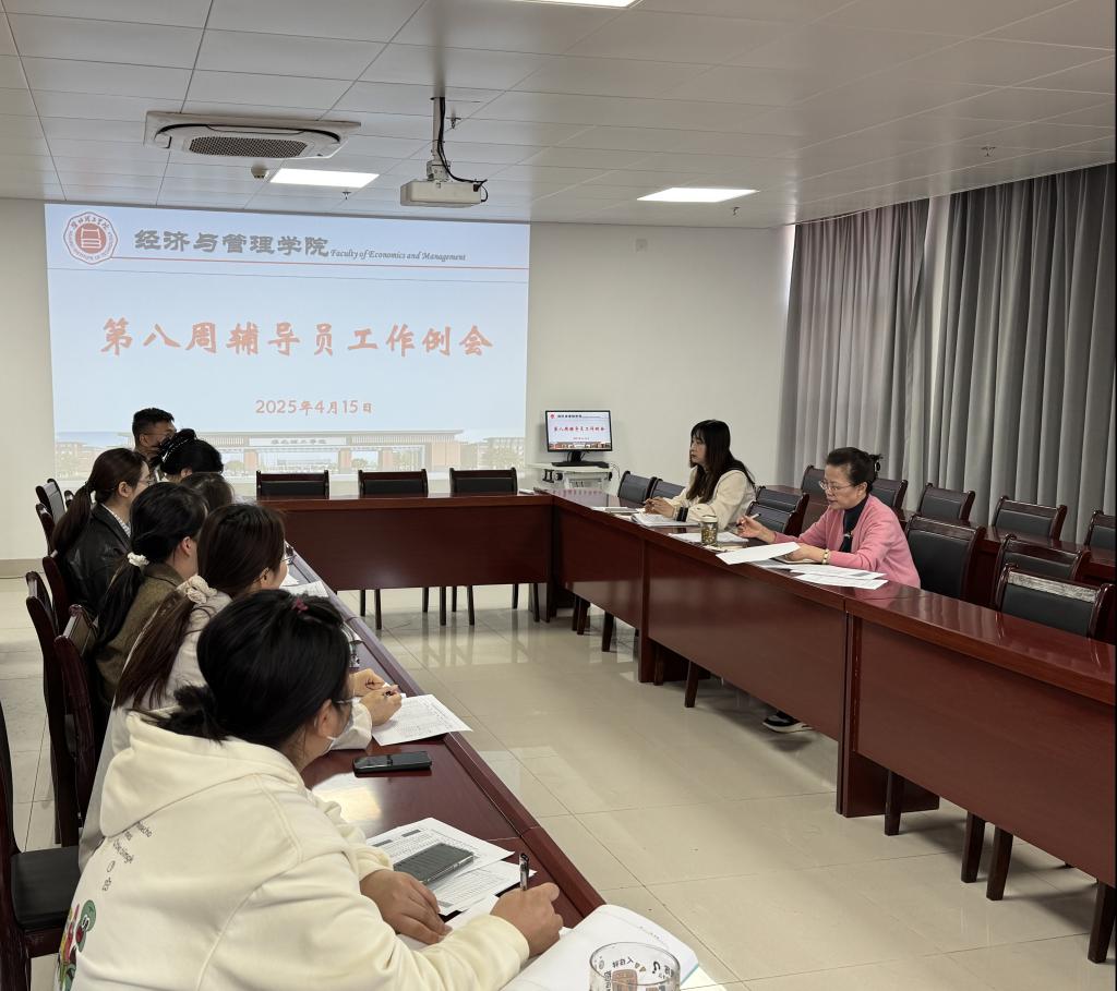 2025年4月15日,九游体育官方网站在行政楼725会议室召开本学期第八周学生管理工作例会暨形体礼仪专题动员会议,学院书记助理员禹辛及全体辅导员参会,会议由院长吴玲主持。