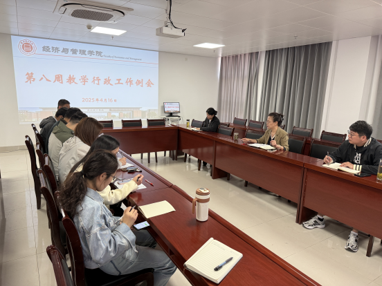 2025年4月16日,九游体育官方网站在行政楼725召开第八周行政工作例会,院长助理张珊、叶赵强,教学秘书李健及各教研室主任出席会议,会议由院长吴玲主持。