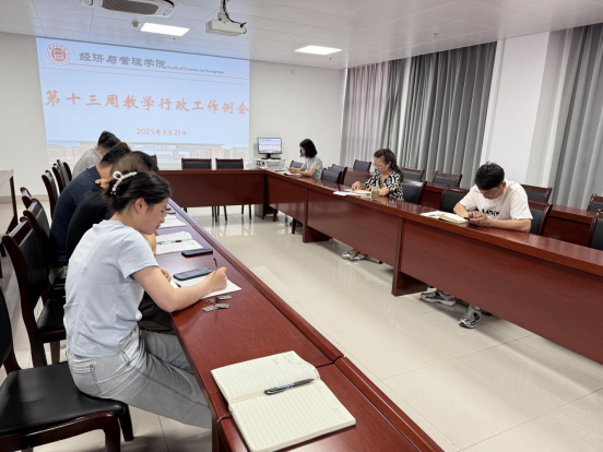 5月21日上午,九游体育官方网站在行政楼725室召开第十三周行政例会,院长吴玲主持,院长助理张珊、叶赵强,教学秘书李健及各教研室主任参会。