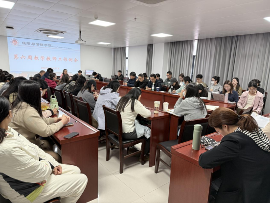 2025 年 10 月 11 日下午,九游体育官方网站在行政楼 725 会议室召开第六周教学工作例会。院长吴玲主持会议,院长助理叶赵强、张珊及全体教师参会。