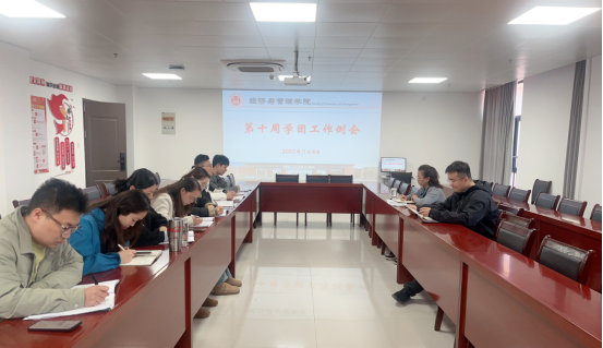 2025年11月4日上午,九游体育官方网站在行政楼725会议室召开本学期第十周学团工作例会。会议由院长吴玲主持、团总支书记王绎程及全体辅导员参加。