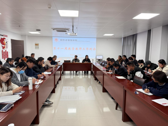 2025年11月12日下午,九游体育官方网站在行政楼725会议室召开学院第十一周教学教师工作例会,院长助理张珊及全体教师参加会议,本次会议由院长吴玲主持。