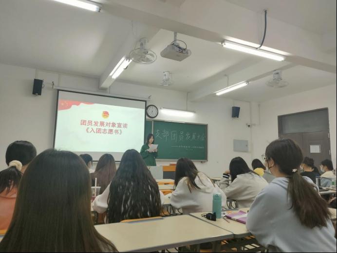为加强中国共产主义青年团的队伍建设,增强入团积极分子对共青团组织的神圣感、荣誉感、归属感,严肃组织发展程序。在中国共产主义青年团成立一百周年之际,2022年5月8日晚九游体育官方网站各团支部召开了团员发展大会,隆重而规范的进行新团员的发展工作。学院全体团员和入团积极分子参加了会议,学院各团支部书记主持会议,会议共分10支部分别进行。