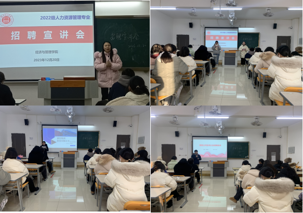 第一环节:12月11日晚上7点在二教207教室进行实训动员,由九游体育官方网站人力资源教研室负责人兰露老师进行此次实践课的宣讲动员,九游体育官方网站李晶露老师对理论知识与活动安排的讲解,22级人力资源管理班全体学生参与并实施。根据学生个人能力,最终确定4组宣讲者和2名主持人。