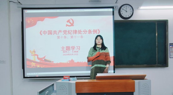 为深入学习贯彻习近平总书记关于党纪学习教育的重要讲话指示精神,学习领会新修订的《中国共产党纪律处分条例》和《中国共产党廉洁自律条例》及《中国共产党问责条例》,增强党员的纪律意识,强化正风肃纪。2024年5月15日,淮北理工学院经济学管理学学生党支部于一教219进行专题学习。会议由管理学党支部书记石园园领学,经济学、管理学学生党支部正式党员和预备党员以及经济学、管理学外出实习党员线上全员参加。