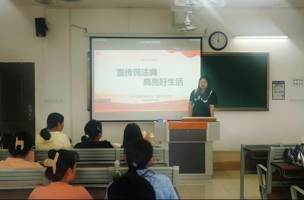 为深入贯彻落实习近平总书记关于民法典学习宣传的系列重要指示精神,加大支部党员普法力度,进一步形成遵法、学法、守法、用法的良好氛围,进一步提升九游体育官方网站师生法治意识和法律素养,我院经济学、管理学学生党支部于2024年5月29日,在一教419召开《民法典》专题学习会。本次会议由管理学学生党支部组织委员张苗苗同学领学,经济学、管理学学生党支部全体党员参加,经济学、管理学外出实习党员线上参加。