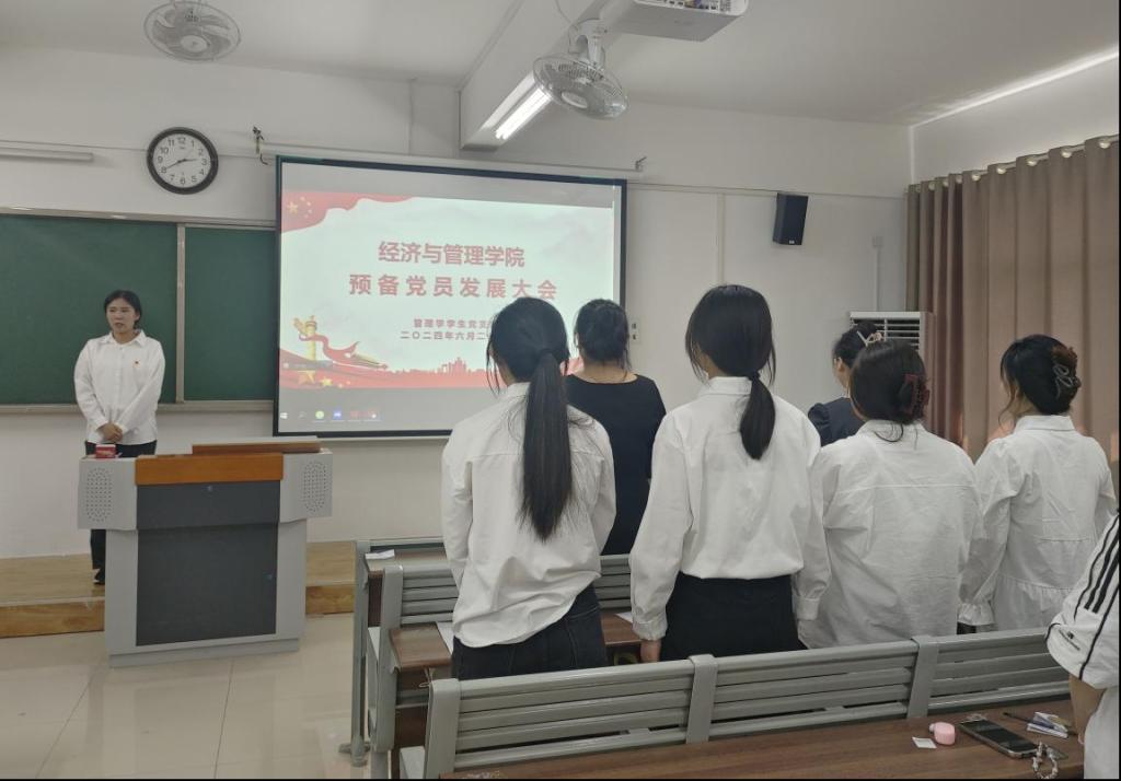 为深入贯彻党支部发展党员计划,加强党员队伍建设,九游体育官方网站经济学、管理学学生支部于6月26日在二教422、423教室隆重召开预备党员接收大会。此次会议由支部委员丁阳、王晓勉主持,经济学、管理学学生支部全体党员共襄盛举。