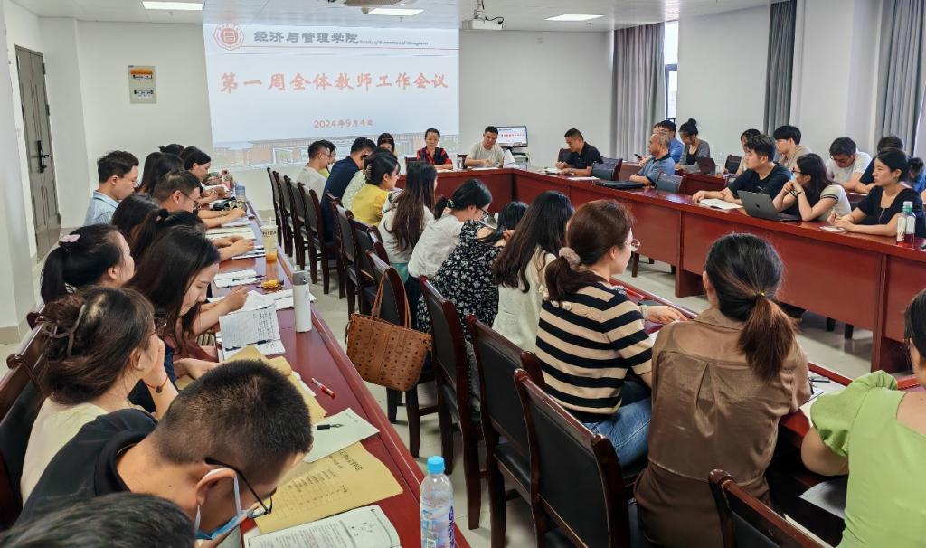 九游体育官方网站于2024年9月3日下午2:30分,在行政楼725会议室召开2024-2025年度第一学期第一周教学工作例会。会议由院长吴玲主持,副院长秦品德、院长助理张珊以及全体教师参加。会议共分三个阶段有序进行。