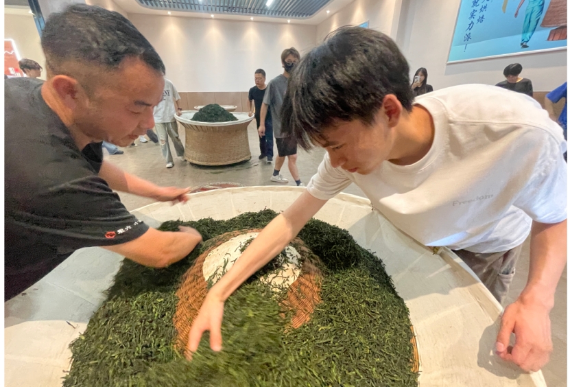 7月2日,实践团队兵分两路,一路前往皖北实践基地—口子窖,一路前往皖南实践基地—徽六,开启暑期实践和预播之旅。在皖北实践基地口子窖,实践团队深入各门店,与销售人员和顾客进行交流互动,了解市场需求和消费者偏好。他们积极利用所学知识,开展直播预播,向观众展示口子酒的产品特色和文化内涵,讲解酿酒工艺和品鉴技巧,团队通过生动讲解与观众互动,增强了品牌认知度的同时,实现了初步的直播转化。在皖南实践基地—徽六,实践团队深入徽六茶场及徽六六安瓜片体验馆,参观茶叶的生产加工流程,与制茶师傅交流学习,了解六安瓜片的制作工艺和品质特点。他们通过直播预播,向观众展示茶叶的制作过程,讲解茶叶的品种特点和健康功效,吸引了观众兴趣,取得了良好的互动反馈和实际转化。这些实战表现即为团队积累了宝贵经验,也为后续正式比赛奠定了坚实基础,增强了信心和动力。