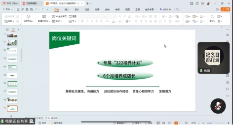 宣讲会伊始,杨经理首先介绍了企业的发展历程、战略规划;随后,刘世豪作为优秀校友分享了自己求职及职业发展经历;之后杨经理详细介绍了“纪”承者的培养路径,特别强调了储备店长专属“222培养计划”;并就企业福利待遇进行了详细的说明;最后简要介绍了在职员工的成长案例;在互动环节中,毕业生就岗位情况、工作地点等问题踊跃发言,线上交流热度较高。