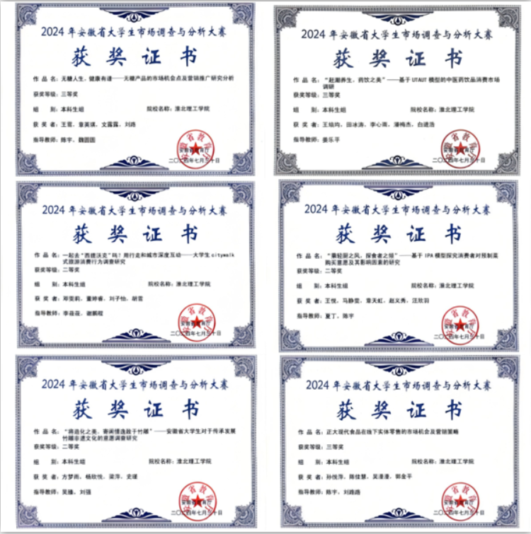 学赛结合,以赛促学:构建“学科竞赛—科研项目—创新成果”培养链条,鼓励学生参与各级赛事。组织学生参加市场调查与分析大赛、“挑战杯”大学生创业计划竞赛等。