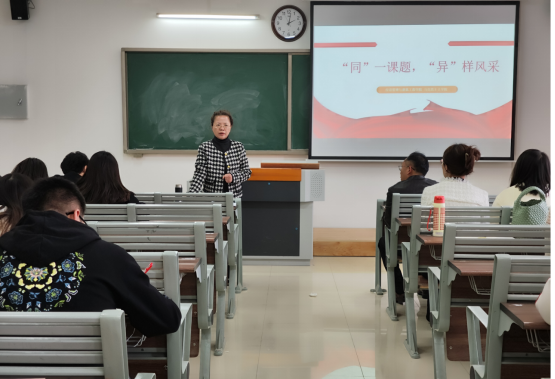 首先,由孙澄澄老师基于近日参加大中小学思政课的提升培训活动进行教学成果展示,立足思政课教师的角度提出了关于课程思政与思政课程关系的思考,提炼了与专业课相融合的思政元素,帮助专业课教师建构教学结合点,并且以说课的形式展示了党的二十大精神如何有机融入思政课的教学成果,分享了让思政课成为问题导向课的具体教法,增强了思政课的针对性,同时对专业课教师给出了进一步改进教学提高质量的建议。。