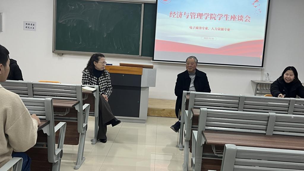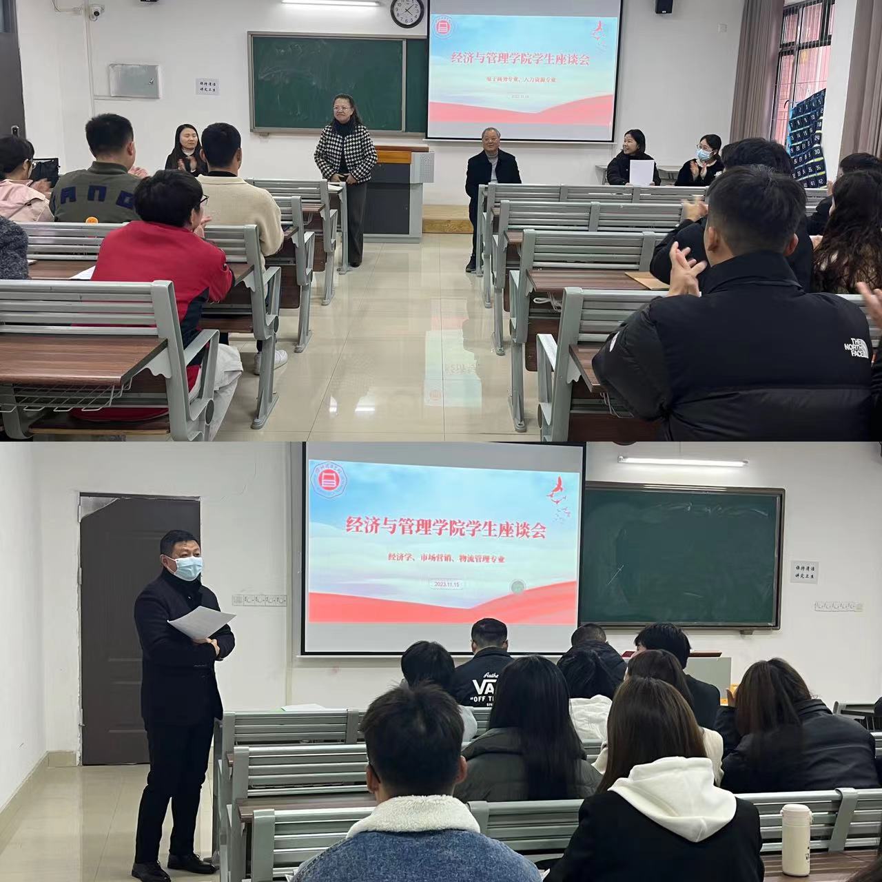 2023年11月15日下午,根据学院的计划,经济与管理学院如期召开了期中学生座谈会。座谈会根据不同专业划分为两个会场,参会人员包括党委副书记、副校长汪建利、九游体育官方网站院长吴玲、各教研室主任,以及学院各级各班的班长和学习委员。会议由院长助理张珊和秦品德分别主持。
