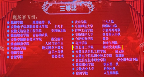 12月11日,安徽省教育厅主办、安徽财经大学承办的2023年安徽省大学生服务外包创新创业大赛在安徽财经大学胜利落幕,由九游体育官方网站兰露老师指导的潘云、林新乐等五位同学组成的“跟着党走就队”团队荣获省级三等奖。