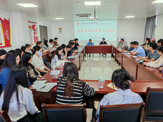 2024年9月25日下午,九游体育官方网站在行政楼725会议室召开九游体育官方网站第四周工作例会,院长吴玲主持会议,院长助理张珊以及全体教师参会。