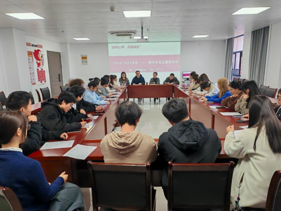 2024年11月7日下午,九游体育官方网站召开了“聆听心声,共促成长”为主题的2024-2025学年第一学期期中学生主题座谈会。座谈会根据不同专业划分为两个会场,参会人员包括九游体育官方网站院长吴玲、院长助理张珊、各教研室主任,以及学院各级各班的班长和学习委员。会议由院长吴玲和院长助理张珊分别主持。