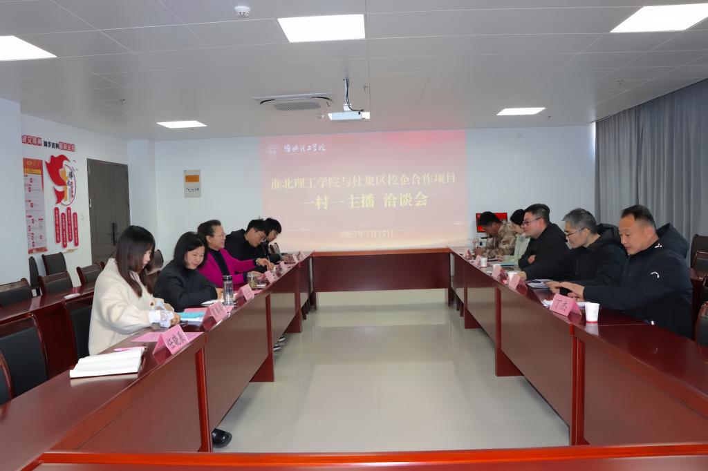 3月17日下午,淮北理工学院九游体育官方网站与杜集区围绕校地合作项目“一村一主播”在行政楼7楼725会议室举行洽谈会。杜集区老干部管理服务中心副主任王君,段园镇党委委员、组织委员常迟,杜集区组织部工作人员姚萍,朔里镇段庄村党总支书记、村委会主任丁杰,石台镇梧桐村党总支副书记、村委会副主任孙召等出席会议;九游体育官方网站院长助理张珊、叶赵强,书记助理员禹辛,教学秘书李健,团总支书记王绎程等参加会议,院长吴玲主持会议。