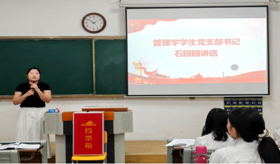 会议严格按照党组织接收预备党员的程序进行。会议伊始,支部委员徐怡苒和周意莲介绍了本次大会的主要议程及参会人员情况。本次大会管理学支部由九游体育官方网站教职工支部书记刘路路同志、经济学支部由九游体育官方网站组织员、宣传委员王胜男同志分别代表总支参加本次支部整个活动。刘路路老师在讲话中强调党员发展工作是党的建设的重要组成部分,关乎党的事业薪火相传,对新党员寄予厚望,鼓励大家坚定理想信念,牢记党员身份,在学习、工作和生活中发挥先锋模范作用。