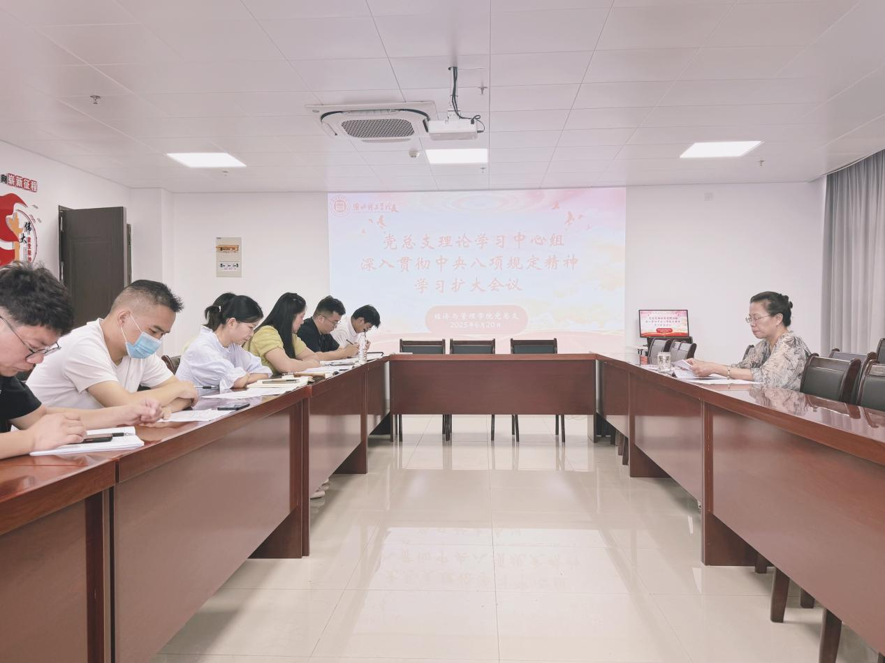 6月20日上午,九游体育官方网站党总支于行政楼725党员活动室召开党总支理论学习中心组深入贯彻中央八项规定精神学习扩大会议。党总支书记吴玲主持会议,并以 “贯彻中央八项规定精神,共筑学院清风正气生态” 为题讲授主题教育专题党课,学院领导干部及党总支全体委员参会。