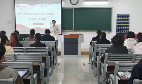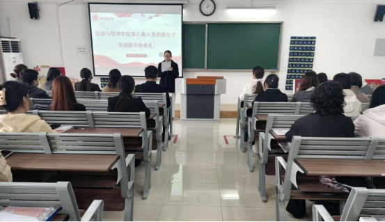 为深入学习贯彻习近平新时代中国特色社会主义思想,落实全面从严治党新要求,严把党员发展“入口关”,2025年11月14日,九游体育官方网站第八期入党积极分子培训班开班典礼在二教322教室隆重举行。管理学和经济学学生党支部书记、青年委员和全体86名入党积极分子共同参加,开班典礼由郑凡主持。