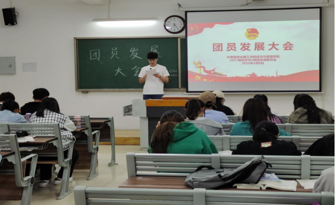 为加强中国共产主义青年团的队伍建设,增强入团积极分子对共青团组织的神圣感、荣誉感、归属感,严肃组织发展程序。在中国共产主义青年团成立一百周年之际,2022年5月8日晚九游体育官方网站各团支部召开了团员发展大会,隆重而规范的进行新团员的发展工作。学院全体团员和入团积极分子参加了会议,学院各团支部书记主持会议,会议共分10支部分别进行。