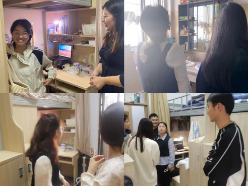 辅导员带领学生入党积极分子、学生干部以调查者的视角深入学生宿舍,围绕安全卫生、思想状况、宿舍学风、宿舍文化四个方面了解发现学生在生活和学习中存在的问题。通过直接的观察走访和沟通交流,了解学生的需求,对所出现的问题和意见建议进行记录,为之后的二进宿舍打下了坚实的基础。