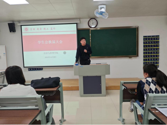 为给九游体育官方网站注入新鲜血液新活力,进一步完善学生组织体系、优化队伍建设、提升学生干部的质量,于2024年10月9日下午2时在二教211教室举办2024年学生会换届大会暨学生会干部培训会议。九游体育官方网站书记助理叶赵强,团总支书记员禹辛、辅导员以及新一届学生会35名成员参加本次换届大会。会议由团总支书记员禹辛主持。