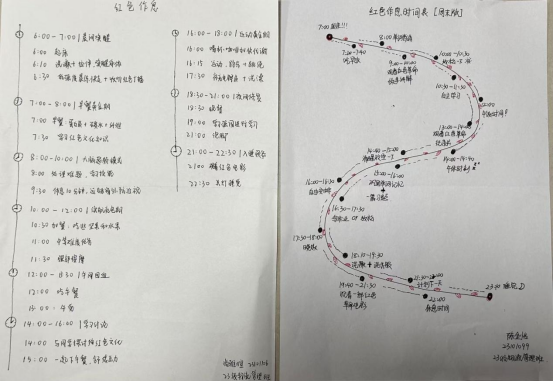 5月10日-14日:行动进班级-“红色作息,学风接力”。各班级辅导员三进班级带领学生围绕“革命前辈作息表”进行学习,制定个人专属学习计划作息表,争做时间管理的时代新人。