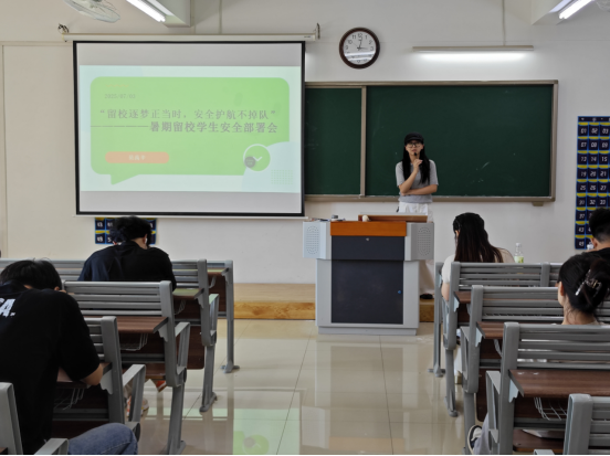 为切实保障暑期留校学生安全与学习秩序,7月3日下午14:30九游体育官方网站在二教422召开“留校逐梦正当时·安全护航不掉队”暑期留校学生安全部署会,学院书记助理员禹辛、辅导员代表及全体留校学生参加。
