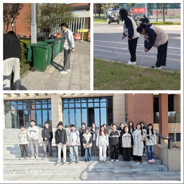 在宿舍楼周边公共区域的清理工作中,同学们手持钳子等工具,细致捡拾路面和绿化带中的垃圾,尤其对墙角、草丛等卫生死角的塑料瓶、纸屑、烟头等进行了彻底清除。大家互相配合,不放过任何一处卫生盲区,展现出认真负责的劳动态度和团结协作的精神风貌。