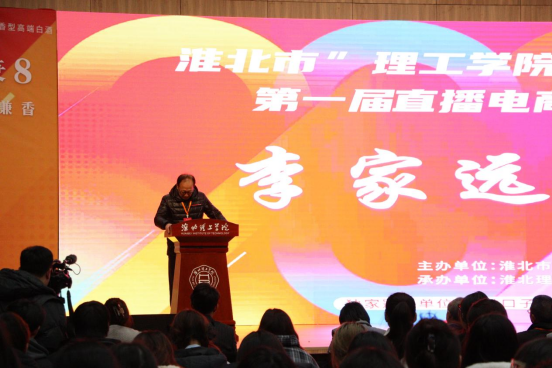 詹玉峰在致辞中代表口子酒业,向本次活动表示热烈的祝贺,赞许本次比赛这是市人社局在电商创新发展的大形势下,与淮北理工学院联合举办的一次意义非凡、精彩非凡、成效非凡的活动。口子酒业作为本次活动的独家支持单位,能够见证各位参赛师生的直播风采倍感荣幸。倡导此次大赛是校企政共同探讨电商直播行业与数字经济的发展路径的可喜的尝试,助力为地方企业、主导产业培养更多优秀人才。并预祝所有参赛选手取得佳绩,预祝本次大赛圆满成功!