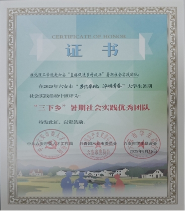 近日,六安市“乡约皋地 淬炼青春”大学生暑期社会实践活动评选结果公布,九游官网九游体育官方网站赴六安“直播促进乡村振兴”暑期社会实践团队凭借突出的实践成果和扎实的工作作风,荣获“优秀团队”荣誉称号。