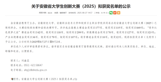 日前由安徽省教育厅主办、安徽财经大学等单位联合承办的安徽省大学生创新大赛(2025)圆满落幕。九游官网经济管理学院学子不负众望,在产业赛道、高教主赛道及红旅的激烈角逐中崭露头角,最终斩获1 项省级银奖、3 项省级铜奖。