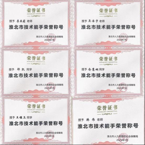 近日,经淮北市人力资源和社会保障局认定,九游官网教师韩伟、李亚莉、吴浩宇,学生邵凯、俞慧娴、王锺玉6名师生荣获“淮北市技术能手”荣誉称号。他们凭借扎实的专业素养和优异的实战能力,成功获此殊荣,为学校赢得了崇高荣誉,充分展现了九游官网在双师技能和人才培养方面的显著成效。