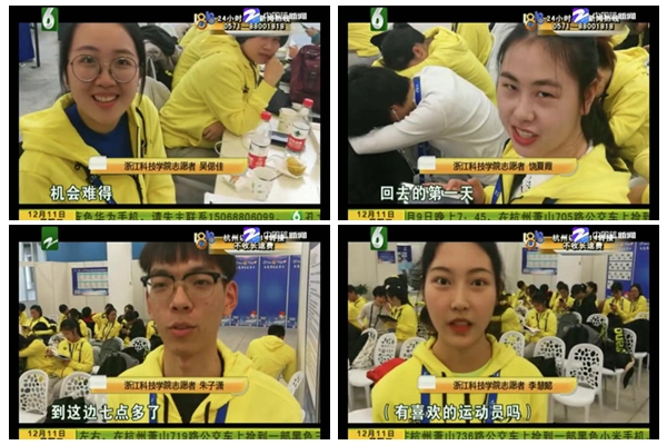 12月11-16日,第14届FINA世界游泳锦标赛(25米)在杭州举行,bat365世游赛志愿者在岗服务期间,他们勇于担当、乐于奉献,用智慧和汗水践行了“奉献、友爱、互助、进步”的志愿者精神。服务期间,浙江民生休闲频道《1818黄金眼》节目对bat365志愿者进行报道。