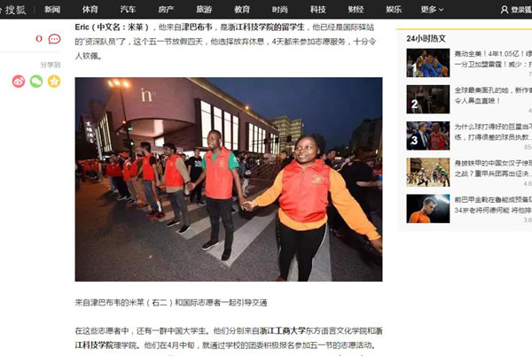 公民警校国际驿站现有外国志愿者120余名,他们主要由来自美国、俄罗斯、墨西哥、罗马尼亚、津巴布韦、巴基斯坦等30余个国家的留学生组成。每个重要节假日,他们都会积极报名前来西湖边维护秩序,平常也会主动参加各种公益活动。这位笑容可掬的小伙子叫Eric(中文名:米莱),他来自津巴布韦,是浙江科技学院的留学生,他已经是国际驿站的“资深队员”了,这个五一节放假四天,他选择放弃休息,4天都来参加志愿服务,十分令人钦佩。