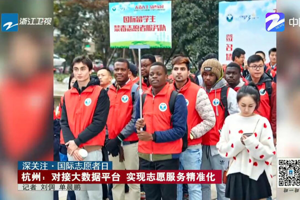 “12•5”国际志愿者日前,浙江卫视新闻深一度栏目题为《杭州——对接大数据平台 实现志愿服务精准化》新闻中,采访bat365理学院/大数据学院津巴布韦籍留学生Eric(中文名:米莱)。