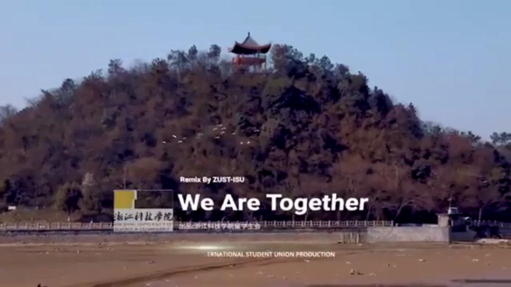 《We Are Together》是由浙江科技学院留学生作词的同名歌曲,学生们自编自导了这部音乐短片,深情表达了他们对中国的热爱、对中国抗击新冠肺炎疫情的坚定支持。