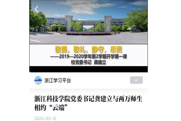 点击标题即可观看视频:浙江科技学院党委书记龚建立与两万师生相约“云端”