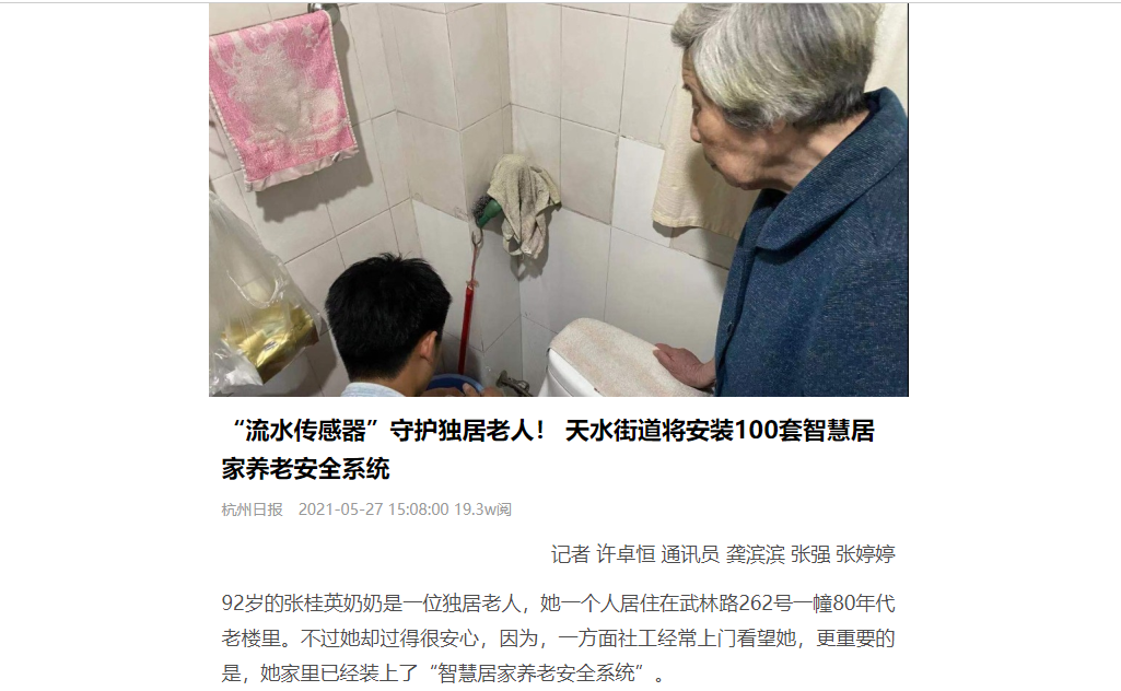 原文链接:“流水传感器”守护独居老人! 天水街道将安装100套智慧居家养老安全系统