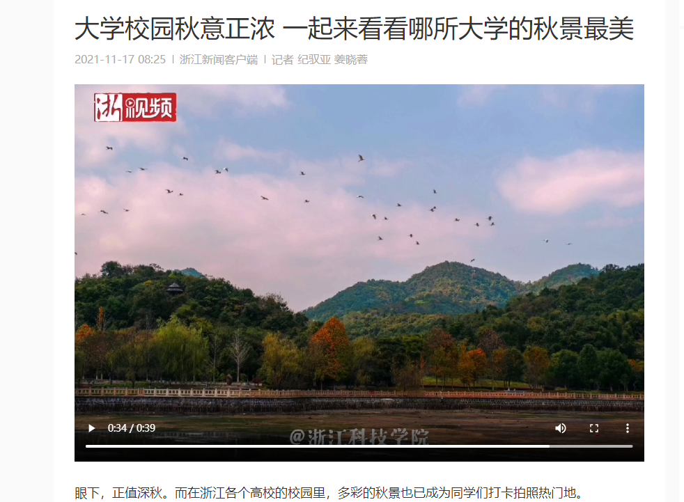 原文链接:浙江新闻客户端:大学校园秋意正浓 一起来看看哪所大学的秋景最美