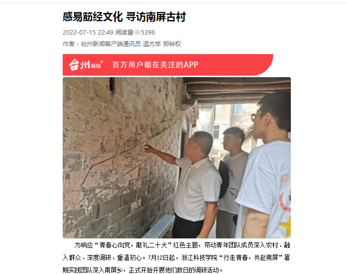 为响应“青春心向党,献礼二十大”红色主题,带动青年团队成员深入农村、融入群众、深度调研、重温初心。7月12日起,浙江科技学院“行走青春,共赴南屏”暑期实践团队深入南屏乡,正式开始开展他们数日的调研活动。