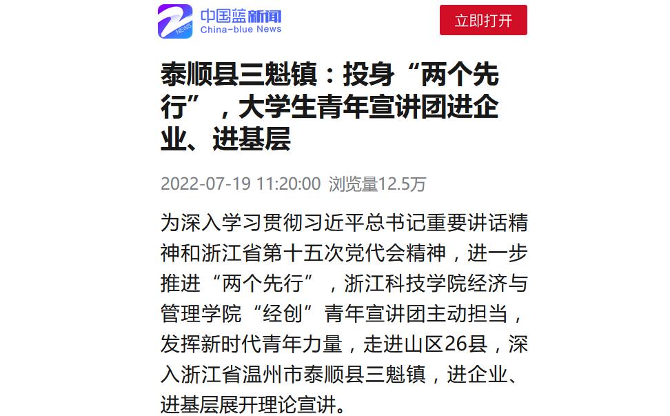 中国蓝新闻客户端:泰顺县三魁镇:投身“两个先行”,大学生青年宣讲团进企业、进基层