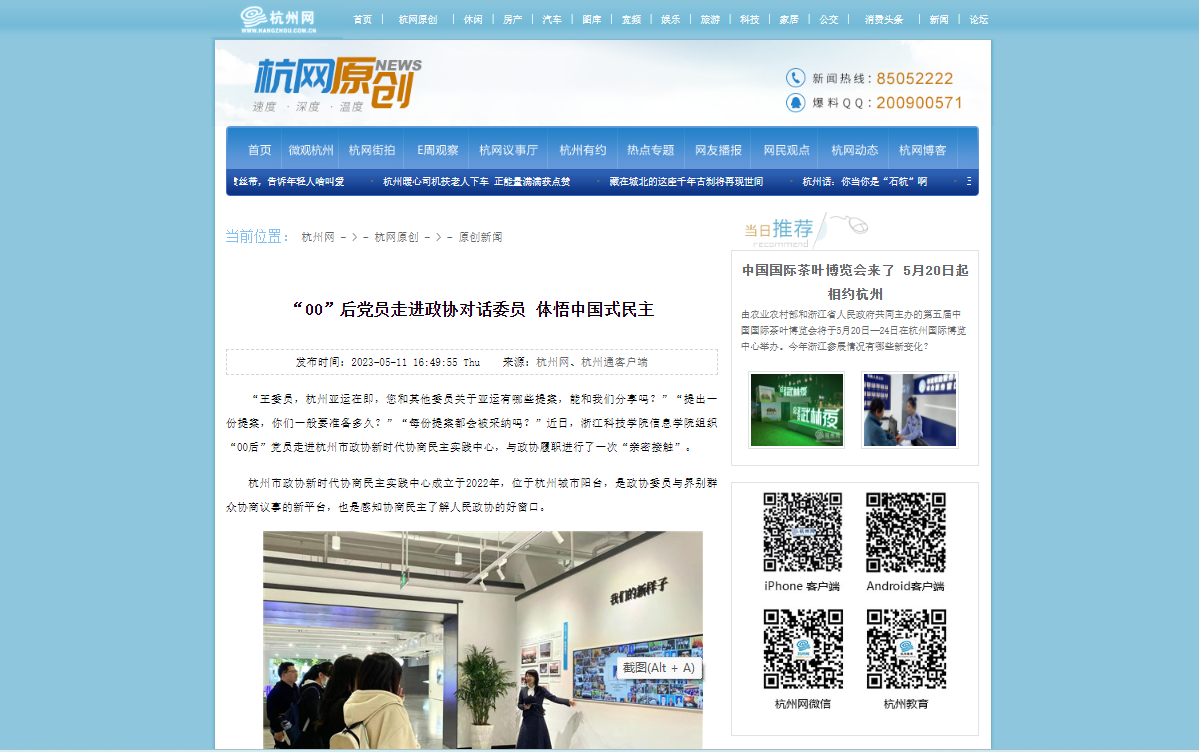 杭州市政协新时代协商民主实践中心成立于2022年,位于杭州城市阳台,是政协委员与界别群众协商议事的新平台,也是感知协商民主了解人民政协的好窗口。