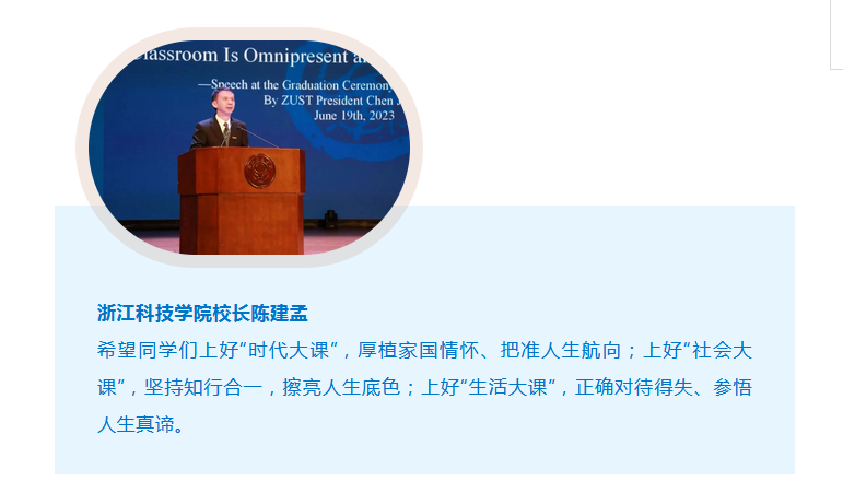 希望同学们上好“时代大课”,厚植家国情怀、把准人生航向;上好“社会大课”,坚持知行合一,擦亮人生底色;上好“生活大课”,正确对待得失、参悟人生真谛。