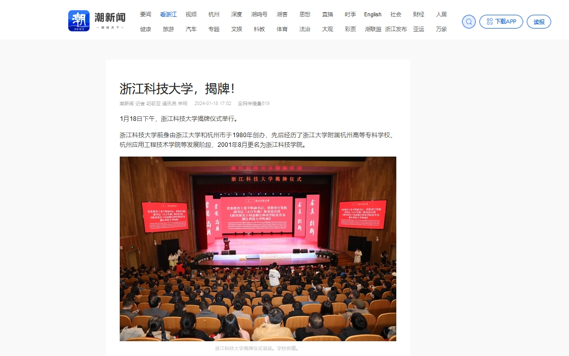 bat365正版唯一官网前身由浙江大学和杭州市于1980年创办,先后经历了浙江大学附属杭州高等专科学校、杭州应用工程技术学院等发展阶段,2001年8月更名为浙江科技学院。